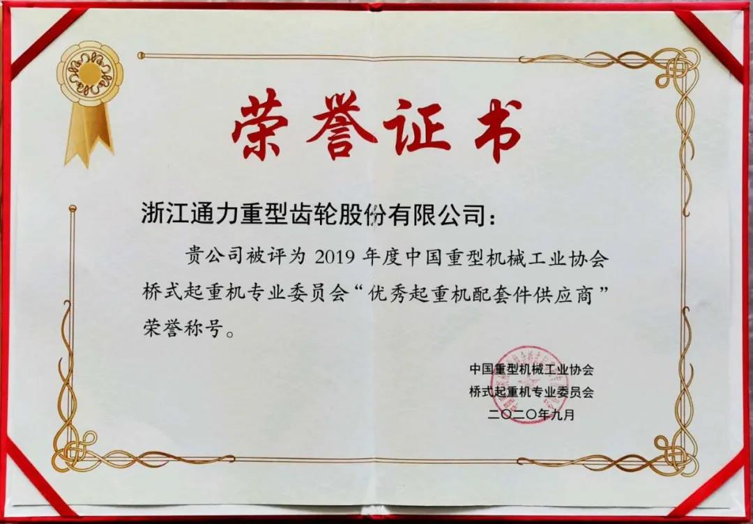近日,通力收到了一份中國(guó)重型機(jī)械工業(yè)協(xié)會(huì)橋式起重機(jī)專業(yè)委員會(huì)頒發(fā)的榮譽(yù)證書(shū),通力被評(píng)為2019年度中國(guó)重型機(jī)械工業(yè)協(xié)會(huì)橋式起重機(jī)專業(yè)委員會(huì)“優(yōu)秀起重機(jī)配套件供應(yīng)商”的榮譽(yù)稱號(hào)。