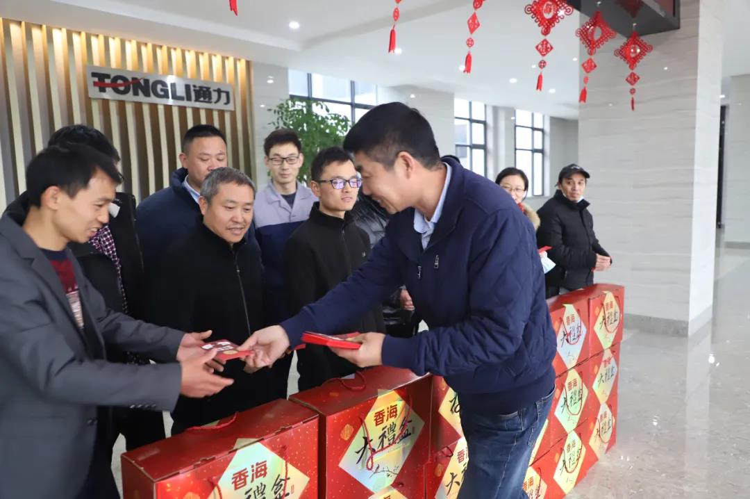 2月8日(臘月二十七),為響應(yīng)國家鼓勵企業(yè)職工就地過年的號召,為給予今年留在瑞安就地過年的通力員工新年祝福和溫暖,通力黨支部、工會連同行政部特為通力留瑞就地過年的職工代表們送上新春大禮包,祝愿員工們新春愉快。公司黨支部書記項(xiàng)建設(shè)代表公司向員工們一一送上禮包。