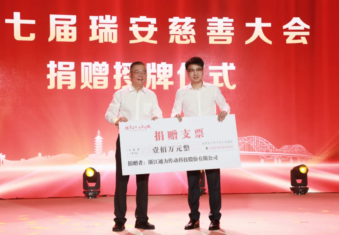 為合力打造共同富裕示范區(qū)縣域標(biāo)桿,響應(yīng)瑞安市委市府號(hào)召,通力科技總經(jīng)理項(xiàng)純堅(jiān)代表通力科技向大會(huì)捐贈(zèng)100萬(wàn)元。